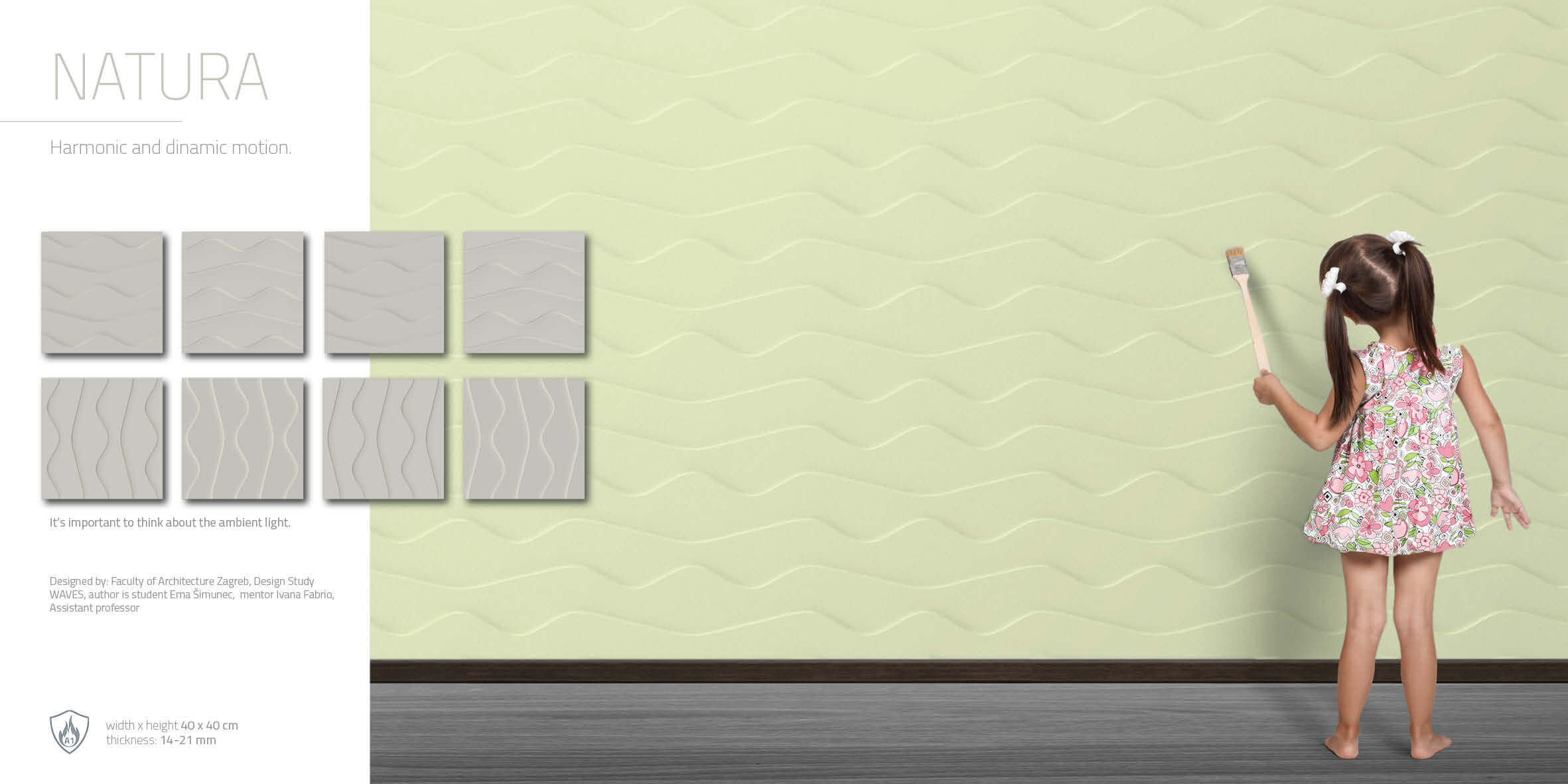 | Opis: | PAP-ART 3D zidne ploče: - izrađene su od posebnog visokokvalitetnog gipsa - dimenzije su 40 × 40 cm ili 0,16 m2 - vrlo su čvrsti i otporni na oštećenja - otporni su na vatru - imaju zvučnu izolaciju - isporučuju se premazani impregnacijom - mogu se rezati bez pucanja - mogu se bušiti bez pucanja - može ih postaviti svatko tko zna postavljati keramičke pločice - mogu se nakon ugradnje obojiti u bilo koju boju zida koju želite - u potpunosti su proizvedeni u Hrvatskoj i ručno su izrađeni :) Harmonijsko i dinamičko gibanje. Dimenzije: 40 cm x 40 cm Debljina: 8 mm - 17 mm (max izbočenje) Težina: 2,7 kg |